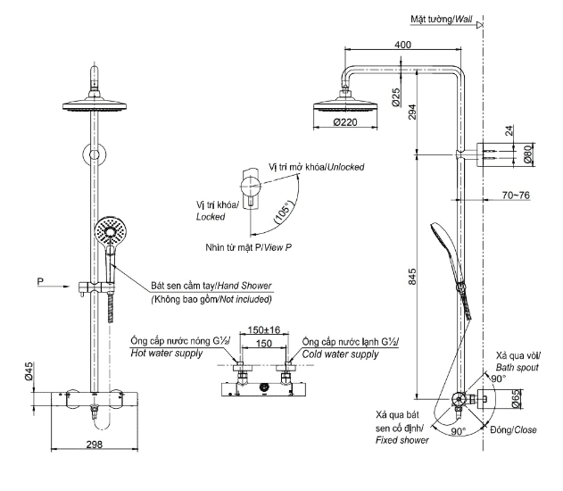 - Áp lực nước: 0.15MPa ~ 0.75MPa