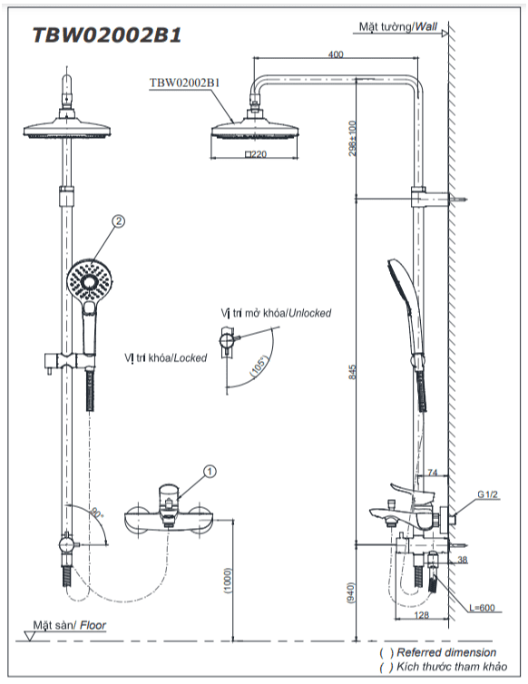 Thông số cơ bản Sen Cây TOTO TBW02002BA Nóng Lạnh