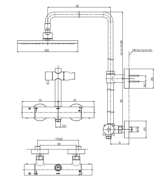 - Sen cây nhiệt độ dòng G, dáng bát sen tròn 1 chế độ, mặt kim loại Đường kính bát sen: 250mm chưa bao gồm tay sen
