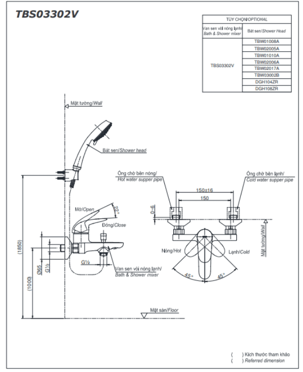 Bản vẽ Sen Tắm TOTO TBS03302V/TBW01010A Nóng Lạnh