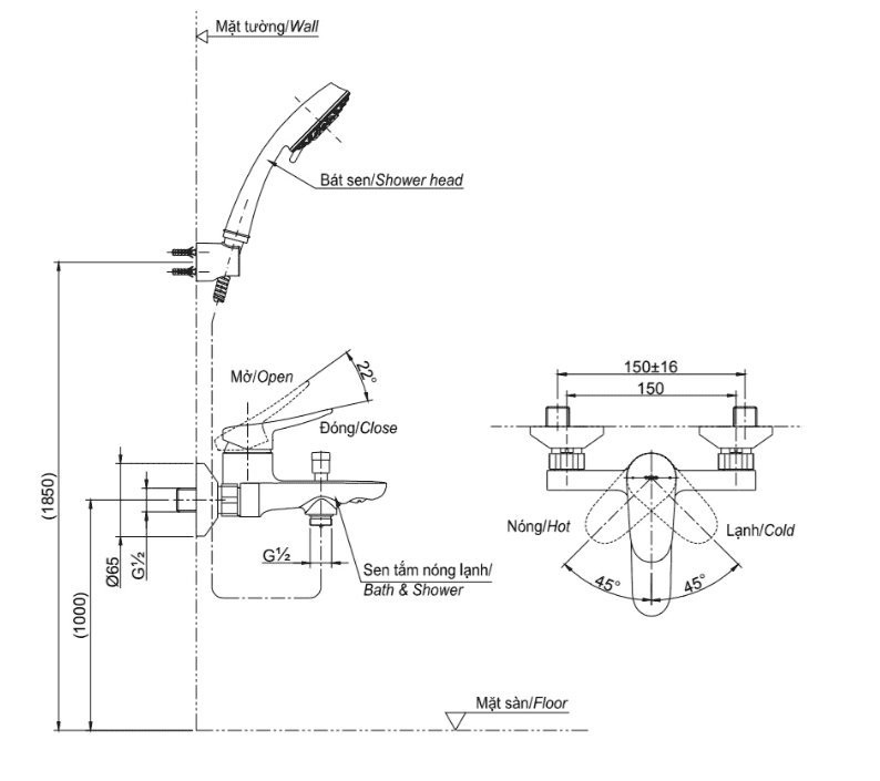 - Áp lực nước: 0.05MPa ~ 1.0MPa