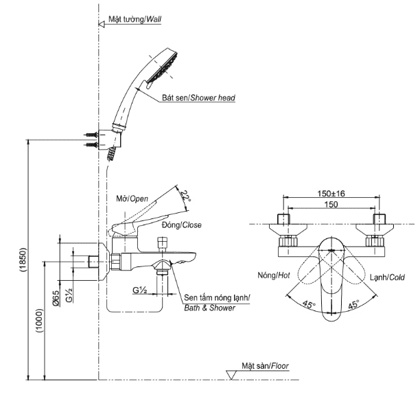 - Áp lực nước: 0.05MPa ~ 0.75MPa