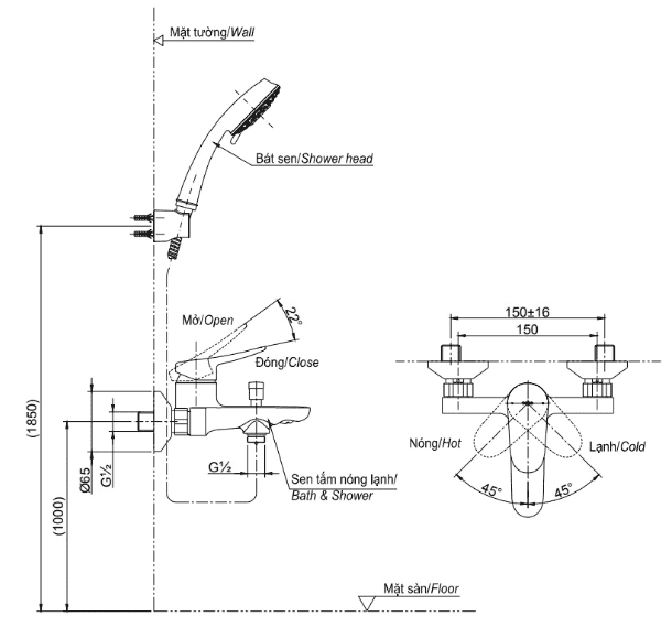 - Áp lực nước: 0.05MPa ~ 0.75MPa