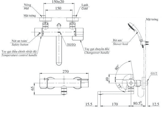 Tham khảo các sản phẩm khác tại Kim Quốc Tiến: Sen cây nhiệt độ TOTO, Sen cây TOTO, Vòi sen cây