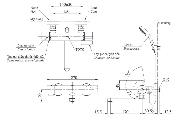 Thông số cơ bản của Sen Tắm TOTO TBV03427V/TBW01010A Nhiệt Độ
