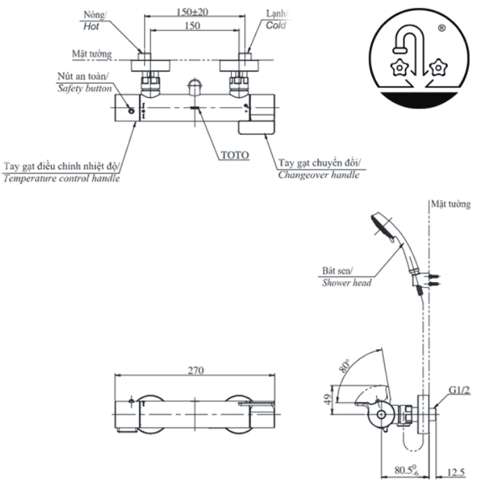 Thông số kỹ thuật của sen tắm nhiệt độ TBV03431V