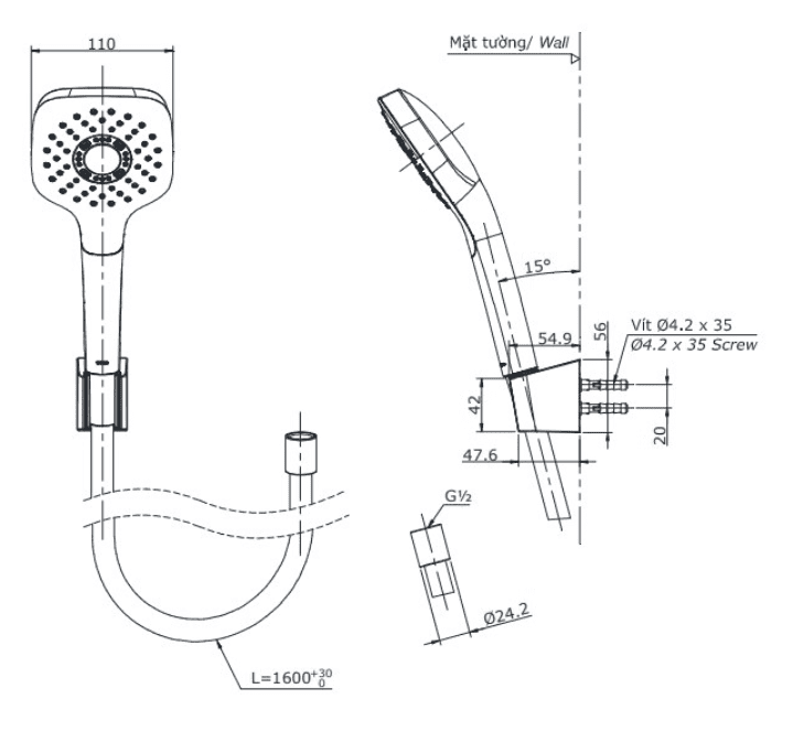 - Sản phẩm gồm gác sen, không gồm cút nối tường