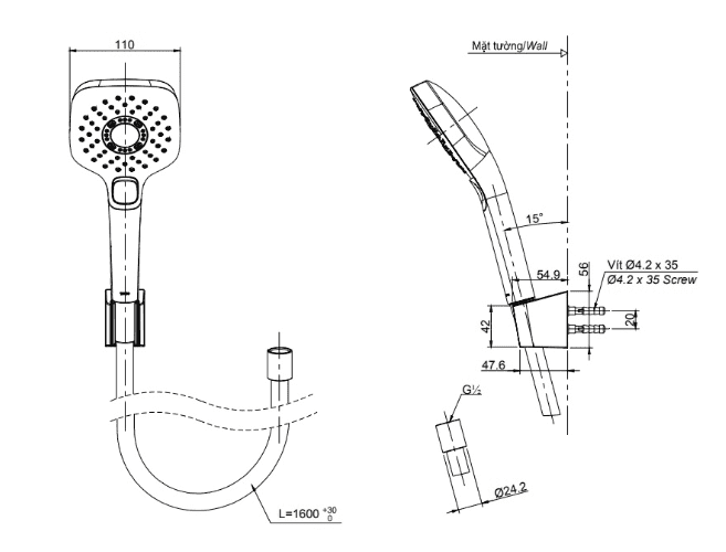 - Sản phẩm gồm gác sen, không gồm cút nối tường