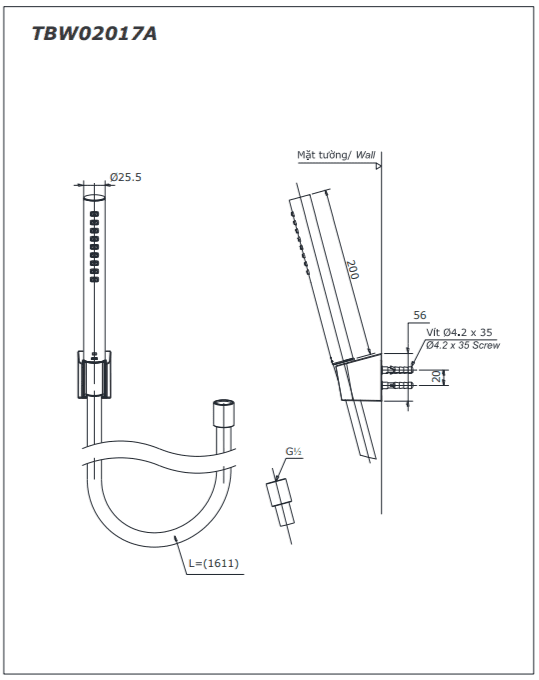 Thông số Tay Sen Tắm TOTO TBW02017A