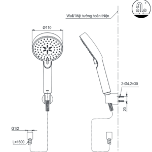 Bản vẽ kỹ thuật tay sen tắm TBW07009A