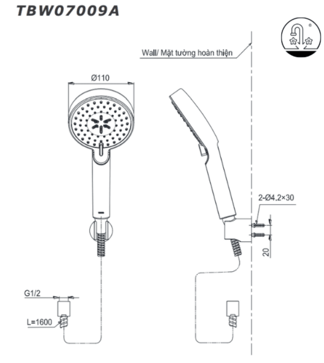 Thông tin kỹ thuật bát sen cầm tay TOTO TBW07009A