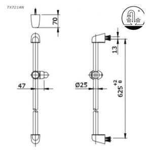 Bản vẽ kỹ thuật của thanh trượt sen tắm TOTO TX721AN tại đây!