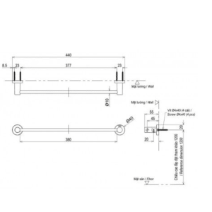 - Kích thước phù hợp: Thanh vắt khăn có kích thước 440 x 55 x 400 mm, phù hợp với nhiều không gian phòng tắm khác nhau.