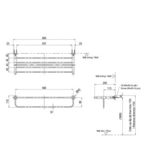 Bản vẽ kỹ thuật của thanh treo khăn TOTO YTS406BV hai tầng