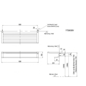 - Kích thước : 628 × 201 x 100 mm (dài x rộng x cao) khá phù hợp với mọi không gian nhà tắm