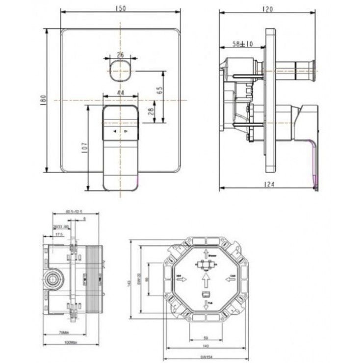 Thông số kĩ thuật van điều chỉnh American Standard WF-1321CS âm tường Acacia Evolution màu vàng