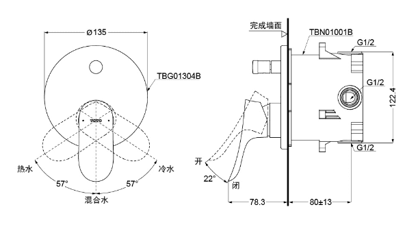 • TBG11304V: Van điều chỉnh nước nóng lạnh kèm nút chuyển hướng và phụ kiện âm tường
