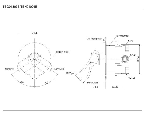 - TBG01303BA: Van điều chỉnh nước nóng lạnh