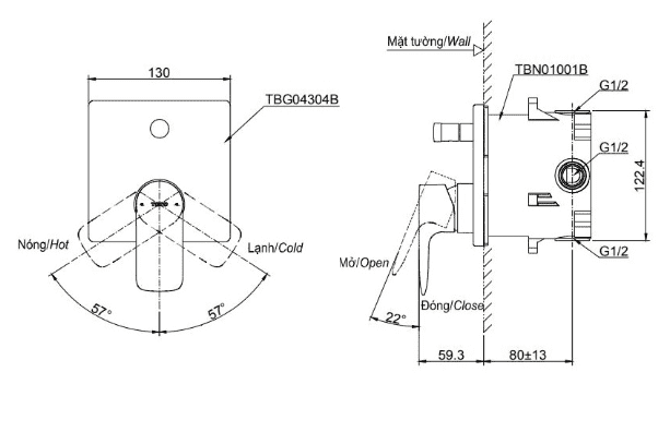 Thông số cơ bản của Van Điều Chỉnh Nhiệt Độ TOTO TBG04303BA/TBN01001B