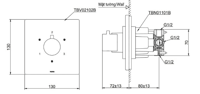 Thông số cơ bản của Van Điều Chỉnh Nhiệt Độ TOTO TBV02102B/TBN01101B