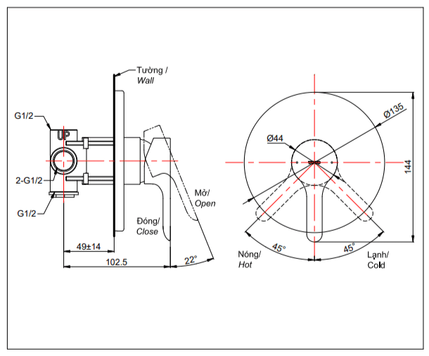 - Áp lực nước: 0.05MPa ~ 1.0MPa
