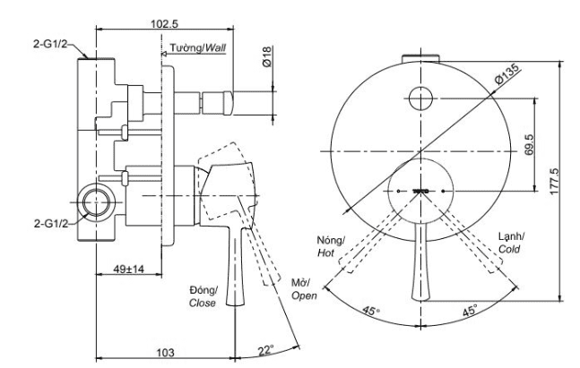 Thông số cơ bản của Van Điều Chỉnh Nóng Lạnh TOTO TBS02304B