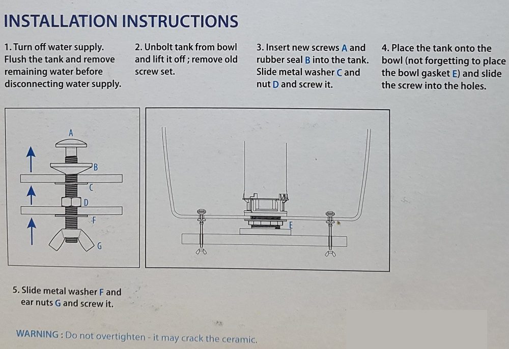 Lưu ý đặt gioăng bệ bồn (E) vào đúng vị trí trước khi siết vít.