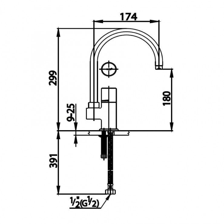 Chiều cao đầu vòi 180 mm
