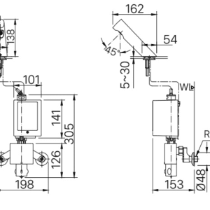 Bản vẽ Vòi Chậu Lavabo Cảm Ứng INAX AMV-300 Lạnh Dùng Pin