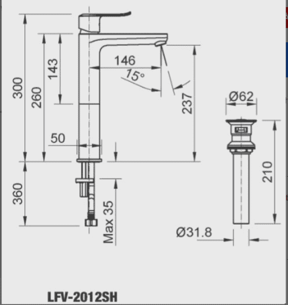 Tham khảo thêm bản vẽ kỹ thuật vòi LFV-2012SH trước khi lắp đặt với các mẫu chậu rửa đặt bàn Inax tại nhà nhé.