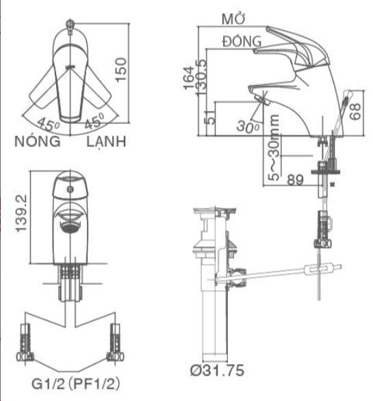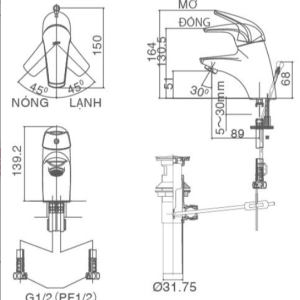 • Áp lực nước : 0.05 MPa ~ 0.75 MPa