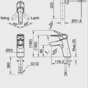Bản vẽ kỹ thuật vòi lavabo nóng lạnh INAX LFV-6012S
