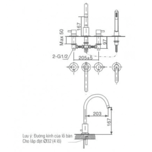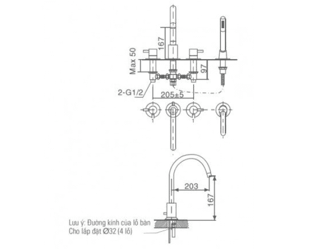 - Kiểu dáng: Vòi lavabo 3 lỗ nóng lạnh
