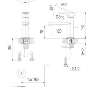 Chiều cao của vòi từ đỉnh lúc mở đến đáy vào khoảng 162mm. Các bạn nên chú ý kích thước này nếu gia đình chúng ta dùng tủ lavabo dạng treo hoặc có gương lớn.