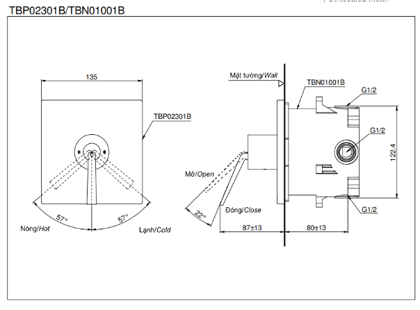 - TBN01001B : Van âm tường