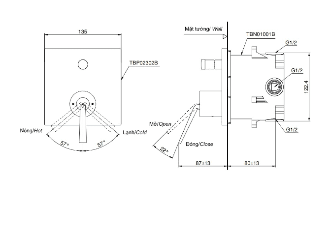 - Áp lực nước: 0.05MPa ~ 0.75MPa
