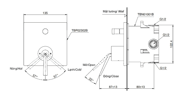 - Áp lực nước: 0.05MPa ~ 0.75MPa