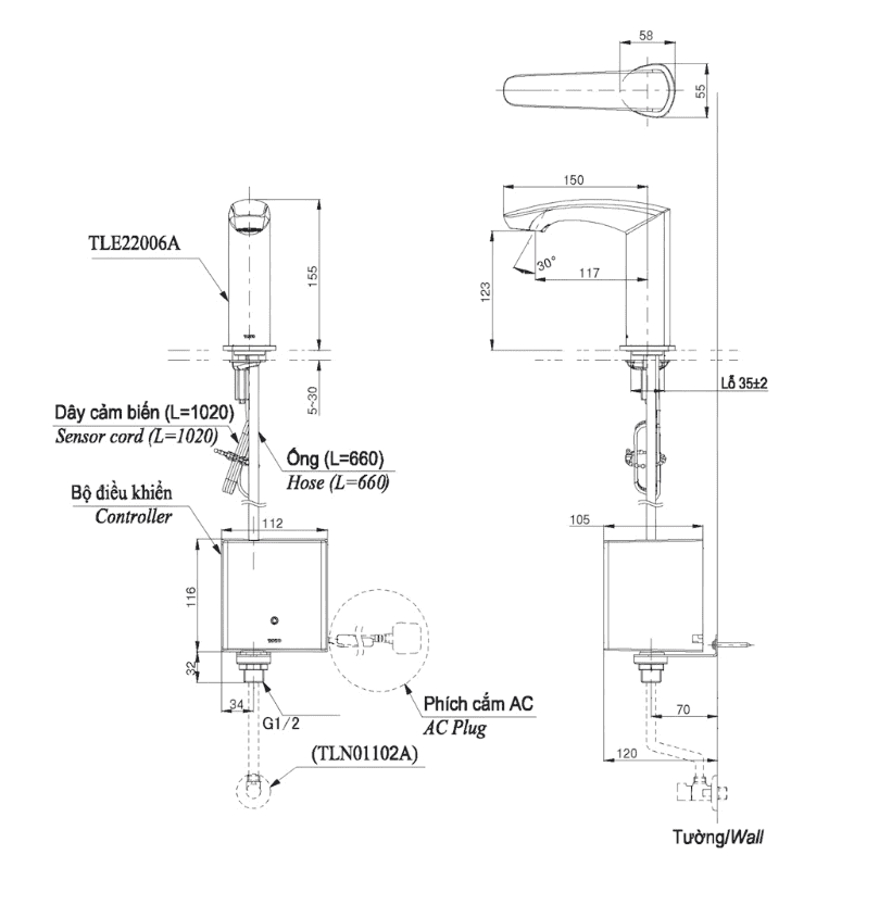 - Loại: Vòi cảm ứng gắn bàn