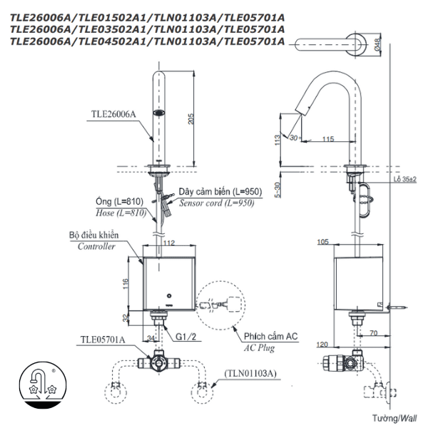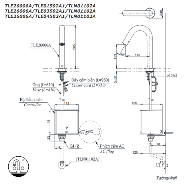 Bản vẽ vòi chậu cảm ứng TOTO TLE26006A