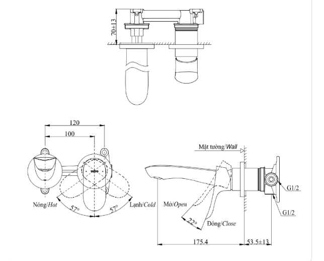 - Áp lực nước: 0.05MPa ~ 0.75MPa