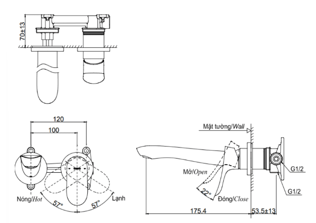 - Áp lực nước: 0.05MPa ~ 0.75MPa