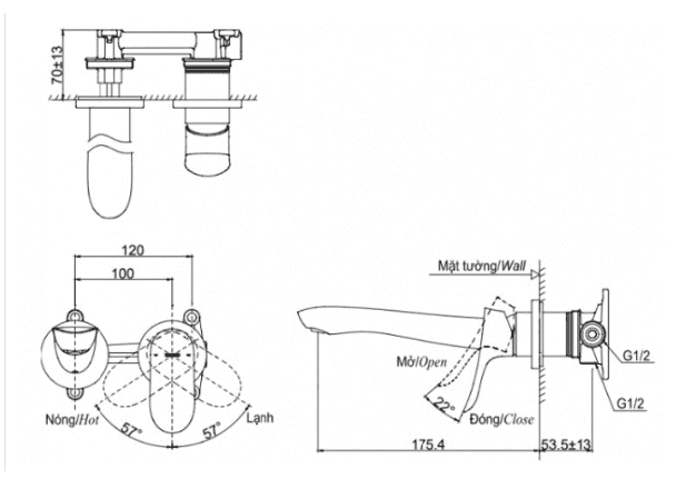 - Áp lực nước: 0.05MPa ~ 0.75MPa