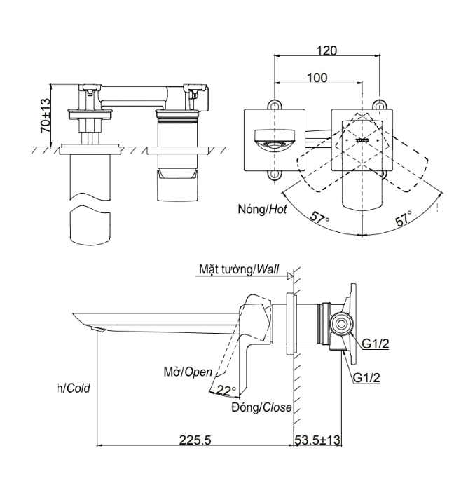 - Kiểu dáng: Vòi Lavabo Nóng Lạnh Gắn Tường GR (2 Lỗ)