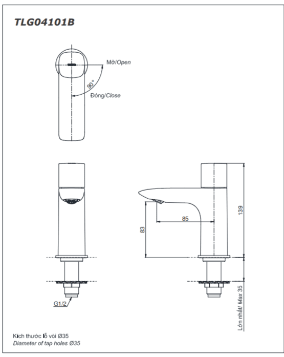 Bản vẽ Vòi Lavabo TOTO TLG04101B#BFG Lạnh