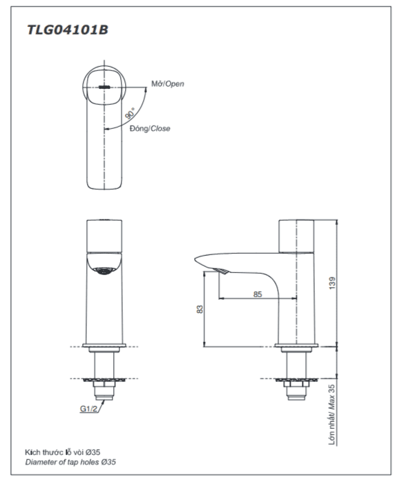 Bản vẽ Vòi Lavabo TOTO TLG04101B#PBR Lạnh