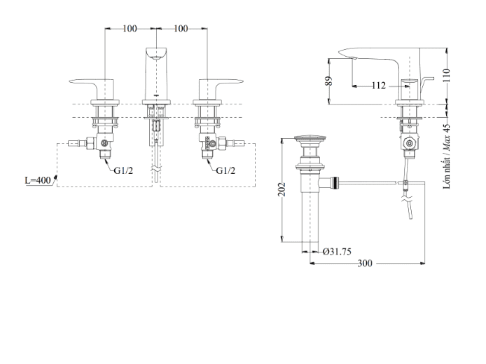 - Bao gồm bộ xả nhưng không gồm ống thải chữ P