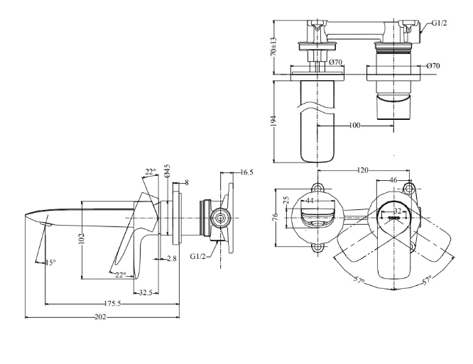 - Kiểu dáng: Vòi Lavabo Gắn Tường