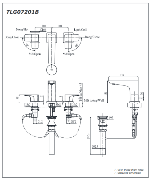 Thông số cơ bản của Vòi Lavabo TOTO TLG07201B Tay Vặn Nóng Lạnh GE (3 Lỗ)
