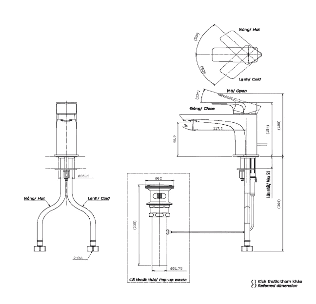 - Bao gồm bộ xả nhưng không gồm ống thải chữ P