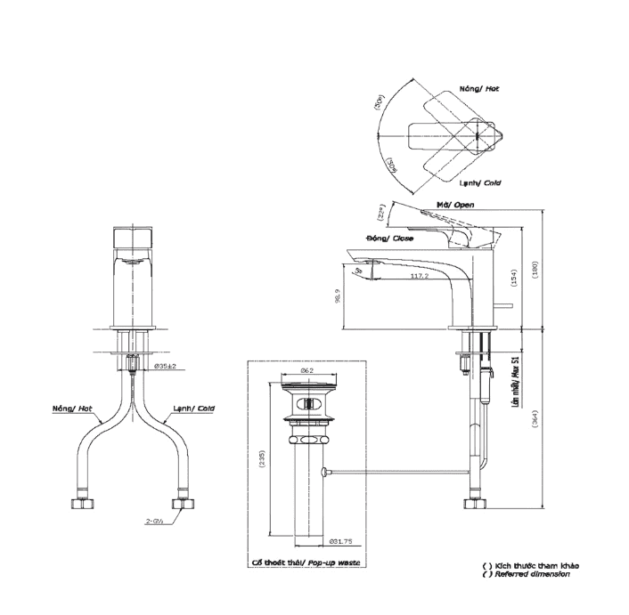 - Bao gồm bộ xả nhưng không gồm ống thải chữ P